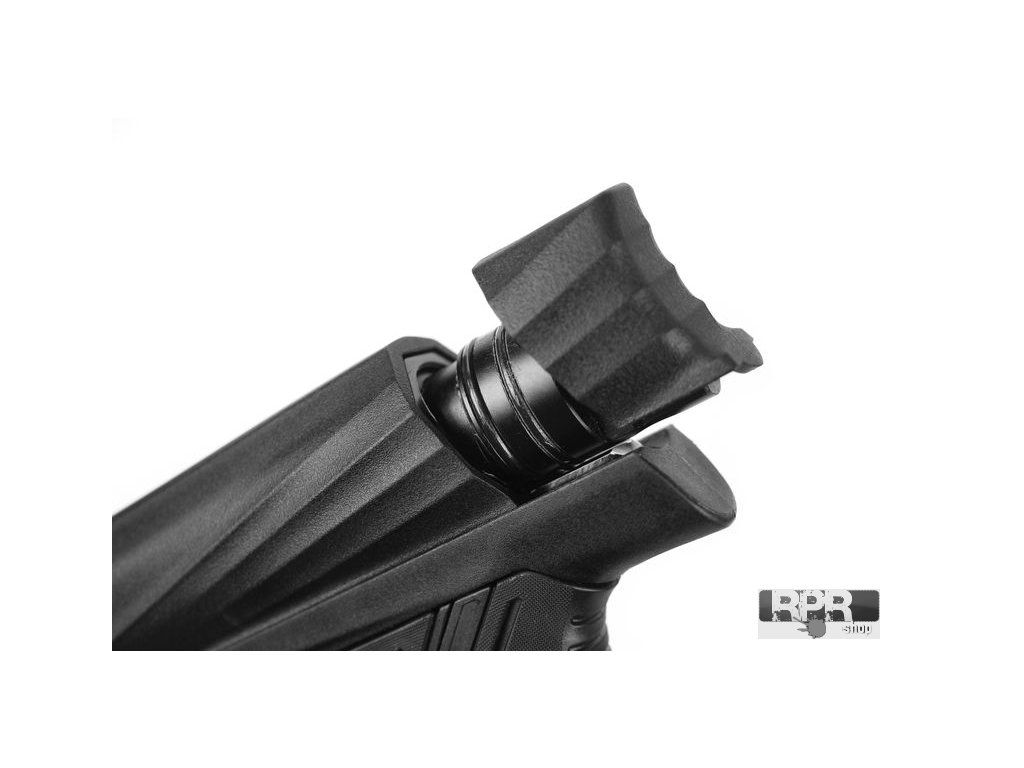 The weapon now features an aluminum clamping feedneck, which increases durability and lowers the profile of the mounted hopper. The original curved trigger has been replaced by a more modern and popular Blade trigger. However, if you prefer the old style, the weapon is fully compatible with triggers from the previous generation. The weapon's frame contains the POPS ASA system, ergonomic tool-less grips, and a Lock’n’Load front grip that houses the 9V battery. The entire package is completed by a two-piece 14.5" Shaft barrel, offering the top-tier quality known from high-end models.